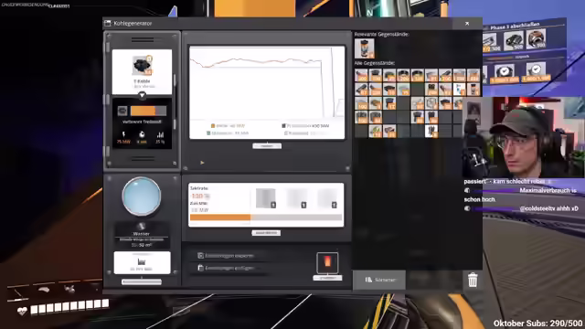 00:36:09Es kommt zu einem unerwarteten Stromausfall in der Fabrik, der durch überlastete Batterien verursacht wird. Der Streamer zeigt sich überrascht und erklärt, dass er die Batterien die ganze Zeit übersehen hat. Um das Problem zu beheben, wird beschlossen, eine Notstromversorgung einzurichten. Dafür werden Kohlekraftwerke benötigt. Es wird eine losgelöste Leitung für die Notstromversorgung gebaut. Die Beschleuniger werden als Hauptverbraucher identifiziert. Es wird eine Strategie entwickelt, um die Kohlekraftwerke nacheinander wieder in Betrieb zu nehmen. Es wird festgestellt, dass das ursprüngliche Konzept funktioniert hat, aber die mangelnde Aufmerksamkeit die Ursache für den Stromausfall war. Der Streamer experimentiert mit verschiedenen Methoden, um die Stromversorgung wiederherzustellen, und stellt fest, dass Standby allein nicht ausreicht. Es wird ein Notstromaggregat für die Röhre eingerichtet, um zukünftige Ausfälle zu verhindern.