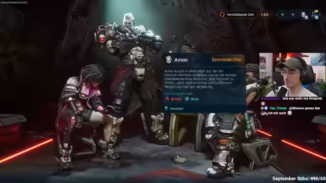 00:39:16Eine Cutscene wird gezeigt, die sechs Jahre nach den Ereignissen auf dem Planeten Kairos spielt. Der Streamer und Vincent wählen ihre Charaktere aus. Vincent entscheidet sich für die Technikerin mit einem Roboter, während der Streamer den Schmiede-Ritter wählt. Sie besprechen die Action-Skills der Charaktere und einigen sich darauf, das Spiel auf normaler Schwierigkeit zu spielen. Es gibt anfängliche technische Schwierigkeiten beim Beitritt zum Spiel, die jedoch gelöst werden können. Die beiden Spieler starten das Spiel und kommentieren die Grafik und das Gameplay. Der Streamer stirbt schnell im Tutorial, was zu humorvollen Kommentaren führt. Sie aktivieren Stream Together und beheben kleinere technische Probleme.