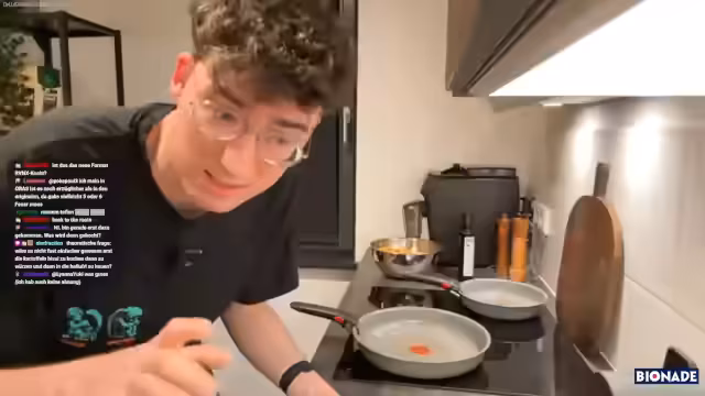 01:28:32Der Streamer experimentiert mit einem vegane Like-Chicken-Gericht und bemerkt Probleme bei der Hitzeeinstellung des Herds. Bei mittlerer Hitze brät das Gemüse zu langsam, bei Stufe 6 verbrennt es jedoch schnell. Ein Diskussion über die unlogischen Herd-Einstellungen (1-9) entsteht. Das vegane Zeug saugt viel Öl auf, was zu trockenen Pfannen führt. Gleichzeitig kochen Kartoffeln in einem Topf, die bereits fertig sind, während das Hauptgericht noch köchelt.