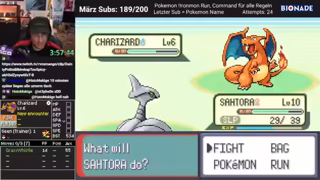03:38:47Das durch den Randomizer bedingte System führt zu extremen Glück- und Pech-Momenten. Ein Kampf endet trotz guter Stats durch einen unerwarteten K.O.-Treffer. Ein später gefangener Metang wäre ideal gewesen, doch sein zufälliges Moveset macht ihn wertlos. Auch eine später gefangene Dragoran entwickelt sich nicht wie erhofft und bleibt schwach. Diese Beispiele verdeutlichen die hohe Abhängigkeit vom Zufall, die sowohl frustrierend als auch fesselnd ist.