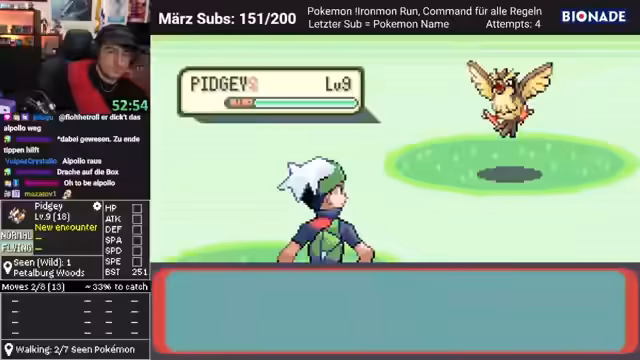 Ein spontaner Lauf auf Pokémon Smaragd wurde eingeleitet. Nach einer zufälligen Begegnung mit einem starken Pokémon wurde das erste Team zusammengestellt. Im Verlauf des Runs traten jedoch bereits erste Verluste auf, was den anfänglichen Erfolg in Frage stellt.