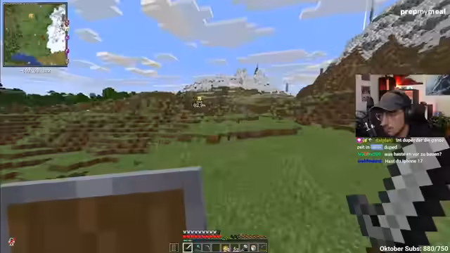 01:42:41Der Streamer hilft einem neuen Spieler bei der Suche nach einem geeigneten Bauplatz. Nach einer Erkundung des Geländes schlägt er eine Wiese am Fuß eines Berges vor, die genügend Platz bietet und nicht zu nah an den großen Bauwerken anderer Teilnehmer liegt. Er warnt vor den potenziellen Gefahren durch TNT-Blöcke von benachbarten Spielern, erkennt aber das Risiko als Teil des Spiels an und wünscht dem Spieler viel Erfolg.