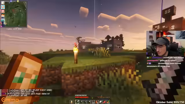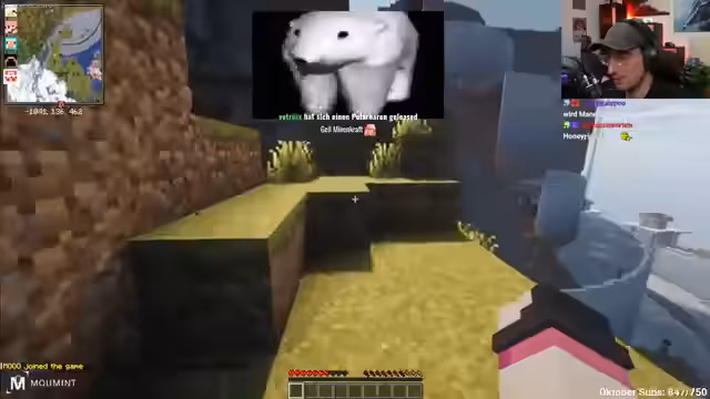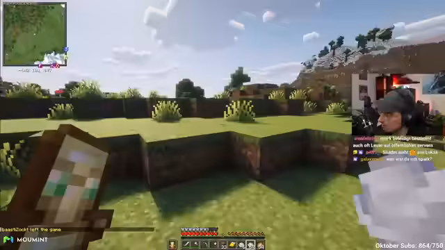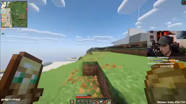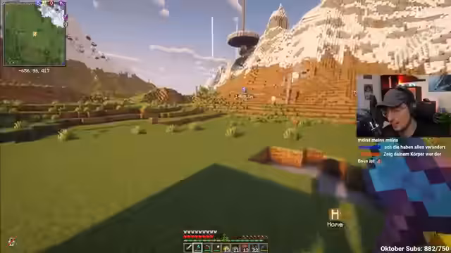 02:39:09Der Streamer stellt fest, dass die Partnerschaft mit Emma nicht verlängert wurde, was er aber mit Humor nimmt. Er entscheidet, dass die aktuelle Höhle ihm nicht viel bringt und plant, sich auf eigene Faust in die Ferne zu begeben, um Diamanten zu farmen. Er verabschiedet sich von seinem Kollegen, der sich für zwei Stunden vom PC entfernt, und vereinbart, dass er jederzeit um Hilfe rufen kann, wenn er zurückgeholt werden muss. Der Streamer bewundert eine Statue von Merle und plant, seine Hauptbasis links davon zu bauen. Er entdeckt, dass die Statue hohl ist und ein Creeper darin lauert. Anschließend macht er sich auf den Weg, um eine Kiste zu platzieren und mit dem Farmen zu beginnen. Er äußert seine Zufriedenheit über das schnelle Basic-Setup-Farming und die Tatsache, dass die Zuschauer nicht stundenlanges Farmen sehen müssen. Sein Hals fühlt sich überraschenderweise besser an, was ihn positiv stimmt. Er sichert sich eine Ebene für seine Basis, die er als perfekt für seine Pläne ansieht, und beginnt mit dem Aufbau eines provisorischen Lagers, wobei er sich über die Fließrichtung von Wasser ärgert, die sich geändert hat.