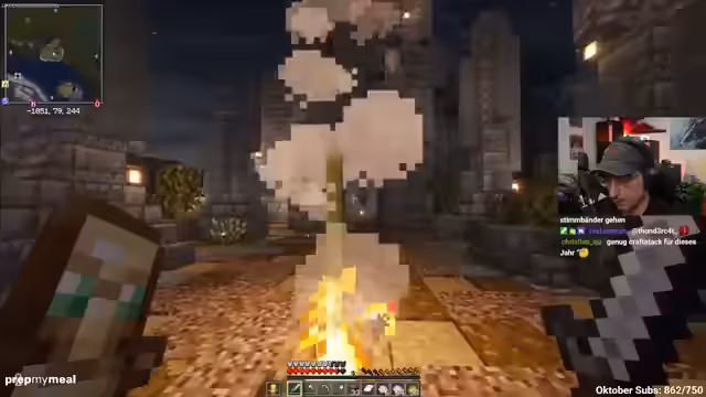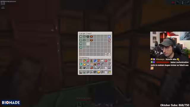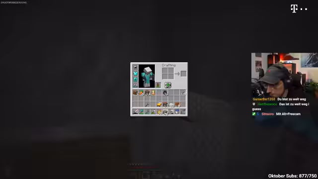 02:04:12Der Streamer lehnt eine Teilnahme an einer Charity Royale Win Challenge ab, um sich auf entspanntes Spielen zu konzentrieren. Er erkundet weiterhin die Trial Chambers und ist beeindruckt von der Menge an Loot, die dort gefunden werden kann. Die Stärke-2-Tränke werden als extrem mächtig empfunden. Nach dem erfolgreichen Verzaubern seiner Werkzeuge plant der Streamer, ein Gebiet für seine Basis abzustecken und mit dem Abbau von Ressourcen zu beginnen. Er erhält eine Feather Falling-Verzauberung, um Fallschaden durch den Einsatz des Tridents zu minimieren. Die Reise durch Flüsse mit dem Trident wird als effizientes Fortbewegungsmittel gelobt. Der Streamer trifft auf andere Spieler, darunter Bram, Chris und Jay, die ebenfalls an einer Win Challenge teilnehmen und Tresore aus Trial Chambers looten müssen. Es wird über das Zähmen von Papageien und das Finden von Chicken Jockeys für Musik-CDs gesprochen. Der Streamer plant, eine Stasis Chamber aufzubauen, um sich jederzeit zum Farmen zurückholen zu können, und beginnt mit dem Aufbau eines provisorischen Lagers und einer Essensquelle, wahrscheinlich einer automatischen Hühnerfarm. Er überlegt, Silberfischköpfe für eine abstrakte Kunstausstellung oder als Mahnmal zu nutzen, um die Ausbeutung von Lebewesen zu symbolisieren.