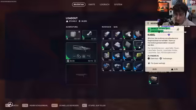 01:28:22Nach dem erfolgreichen Extrahieren beginnt der Streamer, seinen Fortschritt im Hauptmenü zu evaluieren. Er hat eine neue Stufe erreicht und kann nun an einer Werkbank Gegenstände herstellen, da er über die notwendigen Ressourcen wie Aglierung und Stoff verfügt. Er erkundet das Handelsmenü, bei dem er Ressourcen gegen andere Materialien eintauschen kann, und stellt fest, dass man Gegenstände recyceln kann, um Rohstoffe zurückzugewinnen. Dieses Recycel-System wird als sehr nützlich angesehen, insbesondere für Items, die ansonsten nur geringen Verkaufswert hätten.