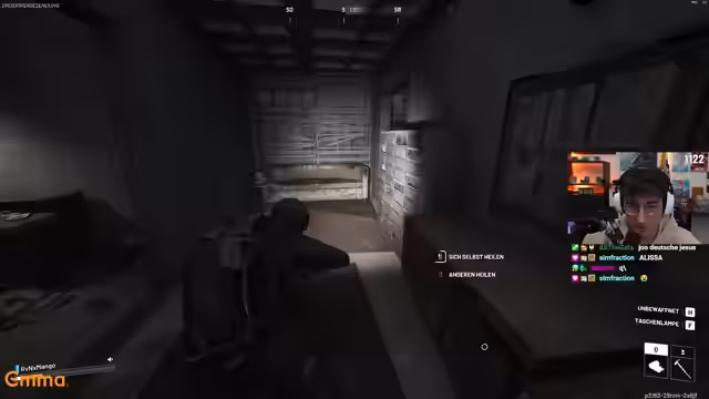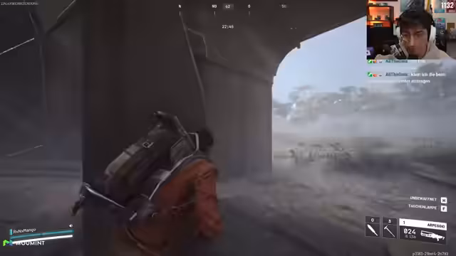 02:59:42Die paranoide Stimmung erreicht in dieser Runde ihren Höhepunkt. Der Streamer ist auf der Hut, als er einen anderen Spieler in der Nähe hört. Dieser reagiert nicht auf seine Friendly-Anfrage und schweigt stattdessen, was den Streamer noch misstrauischer macht und ihn an Tarkov denken lässt, wo Schweigen Feindseligkeit bedeuten kann. Er unterstellt dem Spieler, dieser könnte auf einen Angriff lauern, und plant, ihm aus dem Weg zu gehen. Diese ungespielten Erwartungen an das Verhalten anderer Spieler führen zu einer extrem defensiven Spielweise, die den Genuss der Kooperation aus den ersten Runden überschattet.