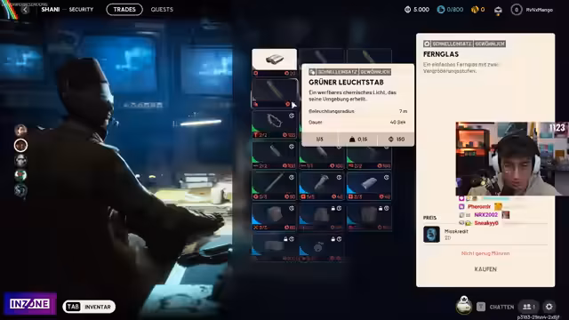 03:04:32Der Streamer erkundet eine neue Karte mit verschiedenen Gebäuden und interagiert mit der Umgebung. Er findet wertvolle Ressourcen, Läden und stellt fest, dass er sein Inventar vergrößern muss. Während der Erkundung hört er Geräusche, die er nicht zuordnen kann, und begegnet einem anderen Spieler. Nach anfänglicher Misstrauensseligkeit wird eine freundliche Verbindung aufgebaut. Die Gefahr in der neuen Map, insbesondere durch ein außerhalb patrouillierendes großes Wesen, ist ständiger Begleiter und sorgt für Nervosität.