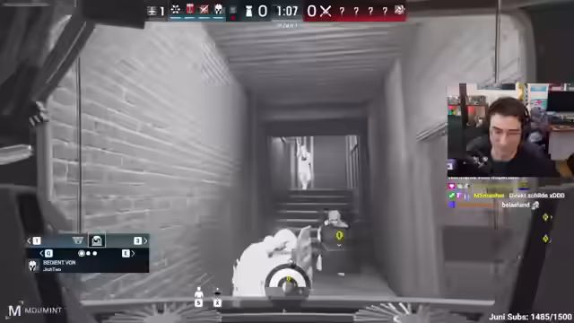 01:20:12Der Stream beginnt mit Diskussionen über Gameplay-Strategien in Rainbow Six Siege. Der Spieler verteidigt eine Position und beobachtet, wie Gegner Löcher in Wände machen. Er empfiehlt, verstärkte Wände ohne Löcher zu nutzen und erwähnt die Drohnen als taktisches Werkzeug. Es kommt zu technischen Problemen, bei denen das Spiel abstürzt und der Streamer einen Neustart empfiehlt. Die Spieler tauschen sich über verschiedene Operator-Fähigkeiten aus, insbesondere über Goyo, der brennbare Kanisten platzieren kann. Es werden taktische Hinweise gegeben, wie man sich mit Jasmin verstecken kann, um Gegner mit Pfeilen zu verletzen.