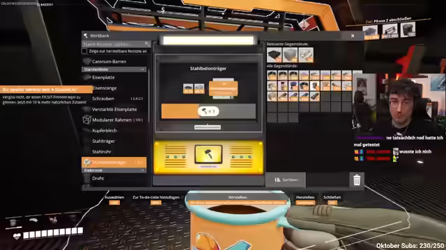 05:07:40Der Stream beginnt mit Überlegungen zur Community und der Gründung einer WhatsApp-Gruppe für Partner. Der Fokus verlagert sich schnell auf den Bau einer Fabrik in Satisfactory. Zunächst werden grundlegende Förderbänder und Gebäude für die Verarbeitung von Kohle und Eisen errichtet. Es werden erste Lösungsansätze für die Organisation der Fabrik, insbesondere die Anordnung der Förderbänder und die Wasserbeschaffung, diskutiert und getestet.