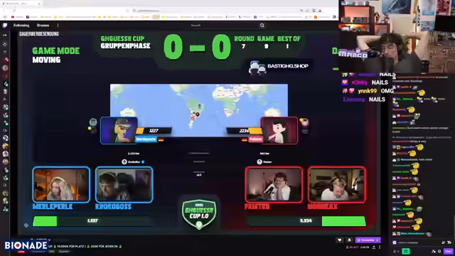 01:46:59Die Spiele gehen weiter, es entstehen jedoch zunehmend technische Probleme. Das gilt besonders für das Team Mahluna, bei dem der Streamer und die Mitspielin nicht in der Lage sind, Guesses abzugeben. Nach mehreren Lösungsversuchen und einem Restart funktioniert es wieder. Die anfänglichen Schwierigkeiten konnten jedoch nicht kompensiert werden. Gleichzeitig setzen andere Teams ihre Spiele fort und nutzen ihre Erfahrung, um präzise Guesses abzugeben.