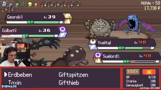 02:00:07Der Streamer beschäftigt sich intensiv mit verschiedenen Pokémon-Kämpfen und strategischen Entscheidungen. Er kämpft gegen gefährliche Arena-Leiter und muss taktische Entscheidungen treffen, welche Pokémon er einsetzt und mit welchen Attacken er agiert. Dabei erwähnt er brennenden Zorn als starke Attacke und diskutiert über Stärken und Schwächen verschiedener Pokémon. Der Streamer zeigt frustation über mangelnde Shinys und widmet sich der Optimierung seines Teams mit Items wie Hyperheiler und Beeren.