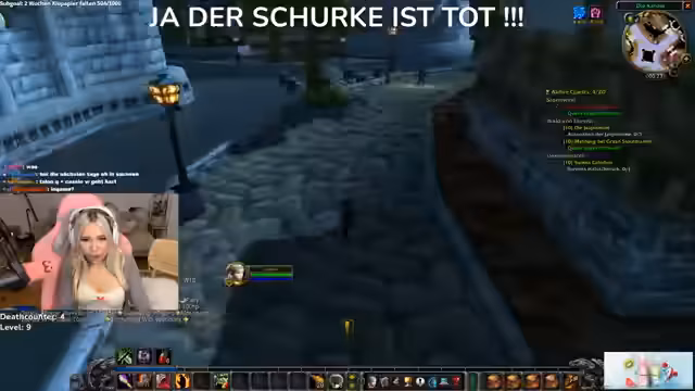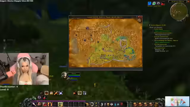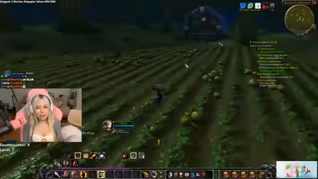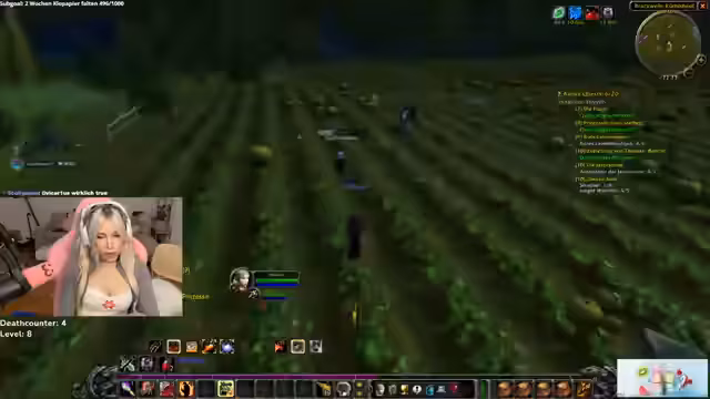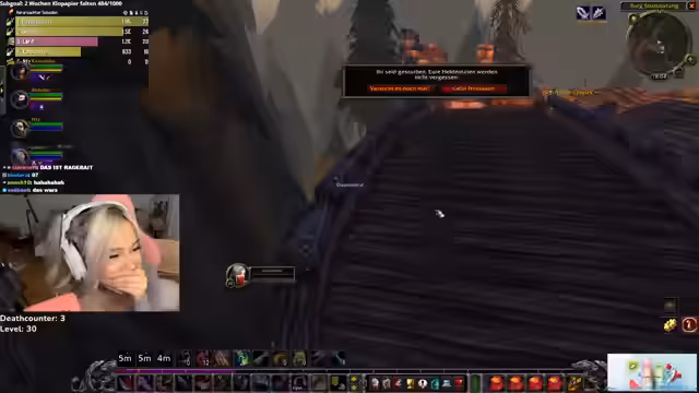 00:27:11Während des Levelns stößt die Streamerin auf Schwierigkeiten: Questziele sind schwer zu finden, und Gebiete wie Black Fathom Deep sind ohne Gruppe lebensgefährlich. Sie reflektiert über frühere Gruppenfails und kritisiert Teamkollegen, die Fehler auf andere schieben. Es entstehen Gespräche über potenzielle Gruppenpartner (z.B. Honeypoo, Romatra). Ein markanter Moment ist der 'Raid'-Invite von Spielern mit Namen wie 'Katsu Hiko' und 'Eierlecken', der sich als Trollaktion entpuppt. Trotzdem schafft sie es, sich einer Gruppe anzuschließen und weiterzuleveln.