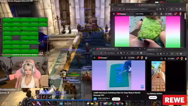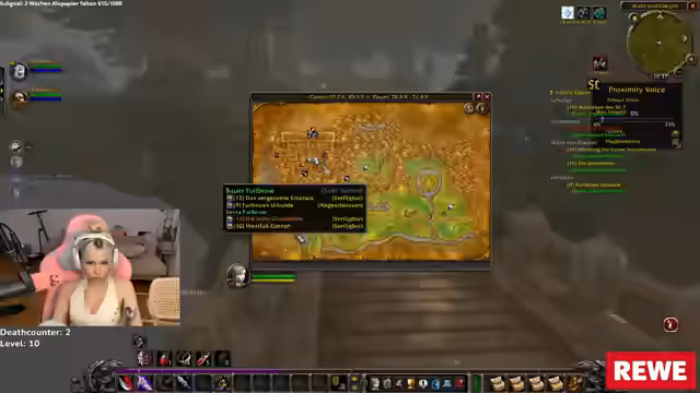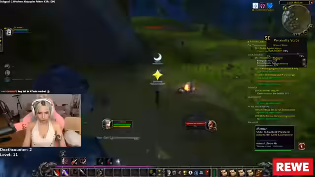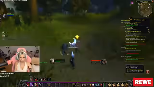 03:34:40Die Dynamik innerhalb der Spielgruppe zeigt sich in verschiedenen Interaktionen. Die Streamerin beobachtet, dass sich ihre Mitspielerin Mina offenbar sehr für gemeinsame Aktivitäten begeistert, was sie als 'schockierend' und möglicherweise überinterpretiert ansieht. Gemeinsam meisten sie die Quest 'Rattenvernichtung', wobei die Streamerin versehentlich eine Ratte tötet und sich dafür entschuldigt. Die Chat-Kommunikation ist dynamisch, mit Rückmeldungen zur Position auf der Karte und humorvollen Anmerkungen. Die soziale Interaktion reicht von hilfreichen Anweisungen bis zu sarkastischen Kommentaren zur Spielweise und dem eigenen Spielstil.