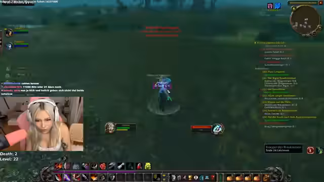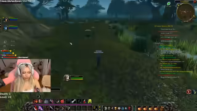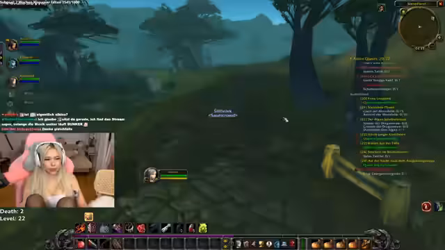 06:21:24Beim Questing in Loch Modan treten Frustrationen auf. Die Streamerin fühlt sich von einem Mitspieler, der sie im Dungeon versetzt hat, allein gelassen. Sie ist unzufrieden mit der Situation und sucht nach alternativen Wegen, um ihre Quests zu absolvieren. Gleichzeitig klärt sie den Chat über die Lage auf und versucht, neue Gruppen für zukünftiges Dungeon-Farming zu finden.