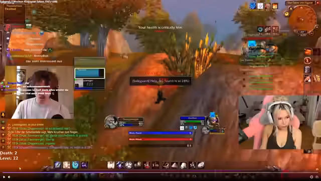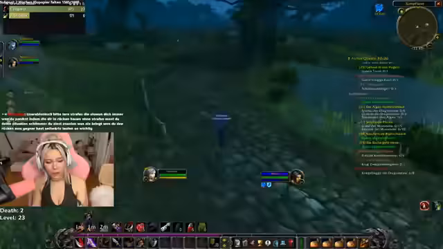 02:39:46Der Streamer beendet sein politisches RP und distanziert sich klar vom realen Russland, um sich auf das sozialistische/sozialdemokratische Rollenspiel in Spiel zu konzentrieren. Die Reise geht weiter in das Sumpfland, um eine Horde-Eskortquest zu beginnen, während die Allianz-NPCs nicht gespawnt sind und die Gruppe sich neu formiert. Es gibt Kooperationsbestrebungen mit Spielern wie Sergen und Raynex.