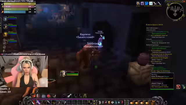 00:00:00Zu Beginn des Streams thematisiert die Streamerin anhaltende technische Schwierigkeiten und die Konsequenzen für das Gameplay. Sie erwähnt, aufgrund geschwollener Augen einen Streamtag pausieren zu müssen, was sie in ihrer Spielentwicklung zurückgeworfen hat. Der Fokus liegt auf World of Warcraft, wobei sie über eine hohe Zahl an Todesfällen spricht. Spieler wie Asics, Nick, Axel und Kitty sterben, wobei die Gründe unterschiedlich sind. Ein Todesfall wird auf Betrunkenheit zurückgeführt, während andere auf unklare Spielmechaniken und unvorhersehbare Aggro-Verhalten der Mobs zurückgeführt werden. Der Streamer zeigt sich frustriert über die offensichtlich unfairen und komplexen Spielregeln, insbesondere das Mana-Management, die langen Respawn-Zeiten und die hohe Komplexität im Early Game, die zu häufigen, vermeidbaren Toden führt. Die Stimmung ist von Verärgerung und einem spürbaren Mangel an Spielspaß geprägt.