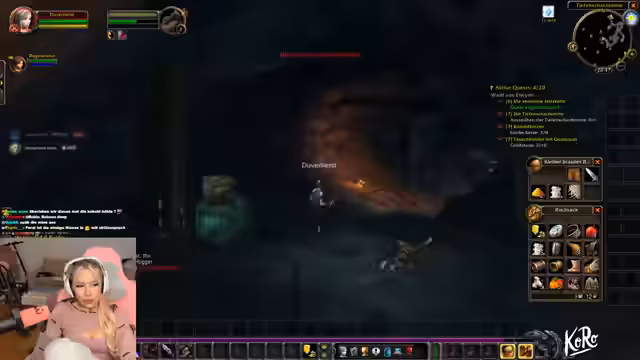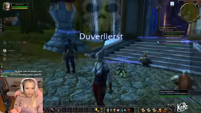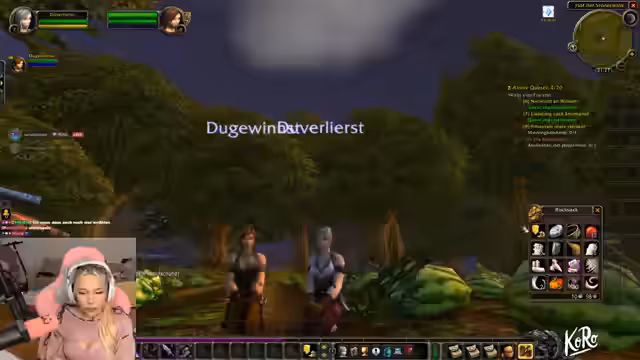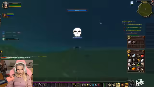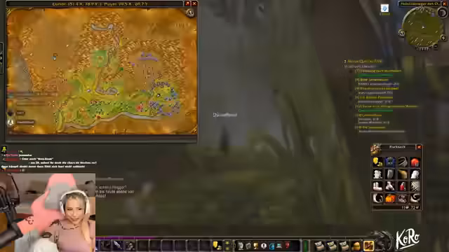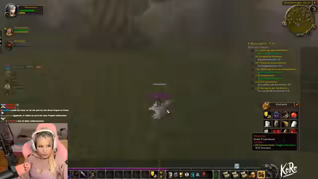 00:06:53Sarah kündigt an, heute World of Warcraft zu spielen, und vergleicht das Genre mit MMORPGs wie Final Fantasy und Elder Scrolls. Sie erwähnt, dass ihr Steuerberater sie gestern beim WoW-Stream gesehen hat. Nachdem sie ihr Cordon Bleu im Airfryer ruinieren, diskutiert sie mit Zuschauern über ihre geplante Rogue-Klasse und ob sie für das kommende Event einen Character-Wechsel zu Warlock in Betracht zieht.