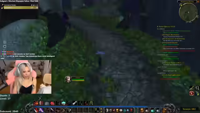 03:09:03Zu Beginn des Streamabschnitts konzentriert sich die Streamerin auf das Leveln in der Zone Ashenvale. Sie erkundet das Gebiet, sucht nach Quests, ist sich jedoch unsicher, welche sie bereits abgeschlossen hat. Es gibt Diskussionen über den effizientesten Weg, um den Flugpunkt in Azshara zu erreichen und die Zone zu durchqueren. Der Fokus liegt auf der Fortschrittsverfolgung, wobei sie offen für Abstecher zu anderen Gebieten wie Wetlands ist, falls dort bessere Quests oder Drops für ihre Gruppe warten.
