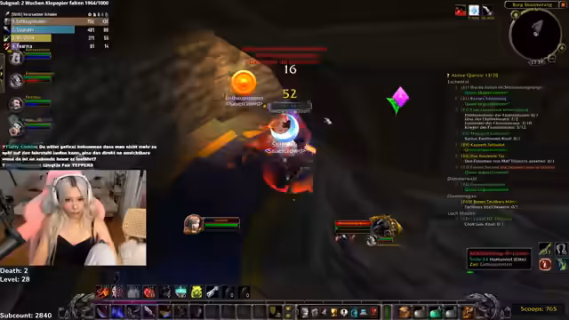 03:51:03Die Gruppe erreicht Level 28 und macht sich auf den Weg zur Instanz 'Burg Schattenfang'. Der Fokus liegt weniger auf den Erfahrungen (da sie überleveled sind), sondern mehr auf dem Farmen von Beute. Während des Spiels kommt es zu einem Todesfall durch eine als unfair empfundene Mechanik: einen schnell anfahrenden Fahrstuhl. Dies löst eine breite Diskussion über das Gamedesign in World of Warcraft aus, wobei die Streamerin argumentiert, dass auch beabsichtigte, aber frustrierende Mechanismen überarbeitet werden sollten.