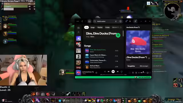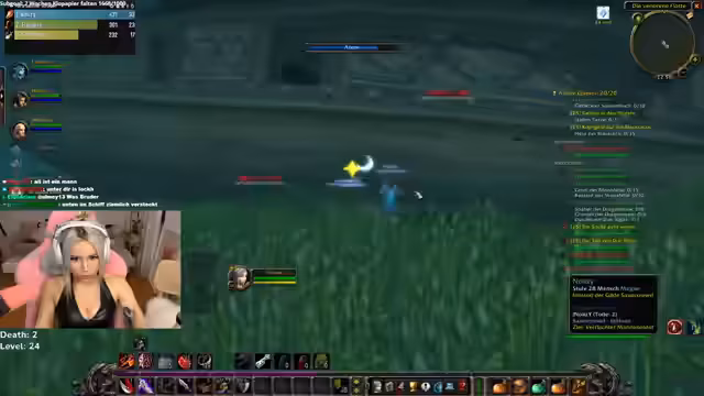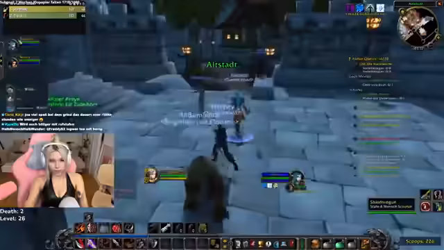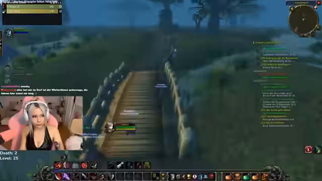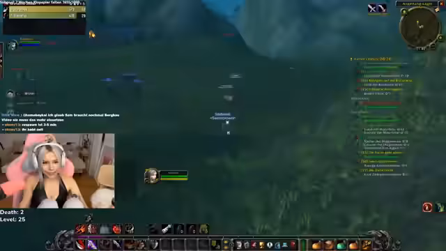 00:16:40Nach einem kleineren Chat über das Ansehen von Clips wechselt die Streamerin zum Gameplay von World of Warcraft. Sie ist im Loch Modan unterwegs, um Level zu grinden, und interagiert mit dem Chat, der auf Tode und gefährliche Situationen aufmerksam macht. Sie merkt an, dass sie nicht der Race zum ersten Level 60 folgt, sondern weil sie einfach Spaß am Zocken hat.