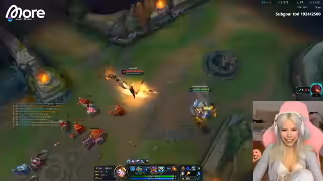 02:20:44Nach den emotionalen Geburtstagsmomenten wechselt der Stream zu einer unterhaltsamen League of Legends-Spielsession mit anderen Streamern wie Marcant. Nach technischen Vorbereitungen wird ein Spiel gestartet. Die Streamerin, die sich selbst als Level 11 einstuft, spielt mit Samira und zeigt sowohl Anfängerfehler als auch erste Erfolge, was für eine humorvolle und lockere Stimmung sorgt, in der sie sich über sich selbst lustig macht.