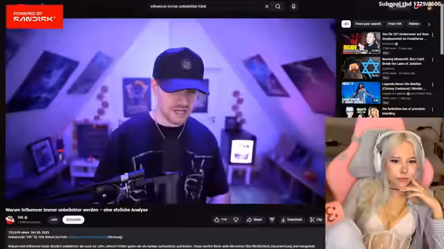 01:36:48Ein Hauptaugenmerk liegt auf der Live-Reaktion auf das neue Musikvideo "Vulture" von Annie the Duck. Die Streamerin reagiert auf den Song und das Video, findet es mutig, aber kritisiert auch, dass es nicht ihren Musikgeschmack entspricht. Danach folgt eine allgemeine Diskussion über Musik und Hypes. Abschließend wird auf den Influencer-Status eingegangen und wie sich das Gefühl für diesen Beruf im Laufe der Jahre verändert hat, mit einem historischen Rückblick auf die Anfänge von YouTube.