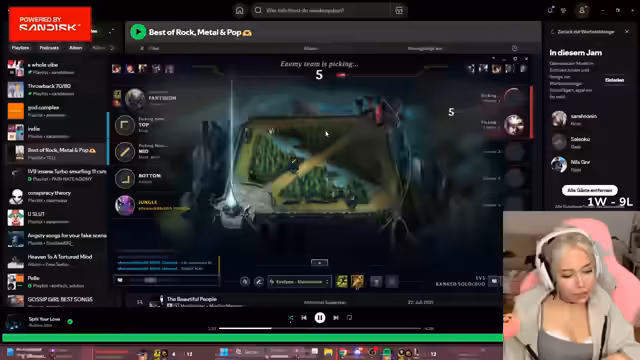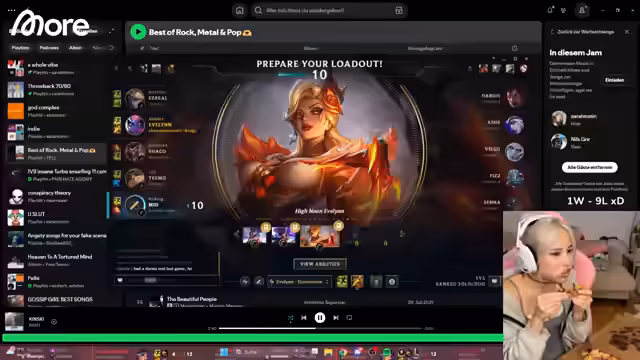 03:23:14Der Stream beginnt mit intensivem League of Legends Gameplay, wobei die Spieler verschiedene Champions und Strategien diskutieren. Es geht um Ränge, Teamkommunikation und Entscheidungen im Spiel. Die Streamerin äußert Frustration über wiederholte Niederlagen und erwähnt, dass sie in der Mine ist (Rangsystem in League of Legends). Sie diskutiert über Teammate-Fähigkeiten und überlegt, ob bestimmte Spieler besser wären als sie.