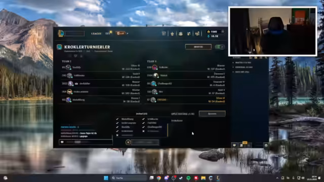 00:00:00Die Teilnehmer des Kroko Cups diskutieren ihre Strategien und Erwartungen vor dem Turnier. Es wird betont, dass Energie und Teamzusammenhalt wichtiger sind als übermäßiges Üben, um nicht vorzeitig ausgelaugt zu sein. Ein Teilnehmer äußert den Wunsch, unbedingt zu gewinnen, auch wenn dies bedeutet, unkonventionelle Champions zu spielen. Die Rollenverteilung im Team wird besprochen, wobei Sascha die Supporter-Rolle übernimmt und die Möglichkeit, auf Damage zu gehen, in Betracht zieht. Die Teammitglieder tauschen sich über ihre Champion-Pools aus und es wird humorvoll über die tatsächlichen Fähigkeiten einiger Spieler spekuliert, insbesondere über Metashis angeblichen „Retired Grandmaster“-Status. Die Diskussion dreht sich auch um die Gegner, insbesondere um Rumatra, gegen den auf keinen Fall verloren werden darf. Es wird eine Infografik für die Champion-Auswahl erwähnt, die jedoch nicht öffentlich gezeigt werden darf.