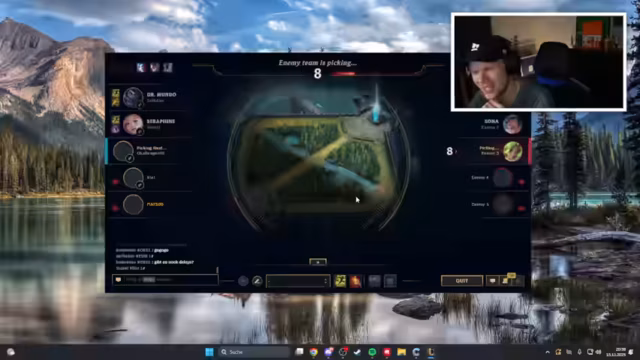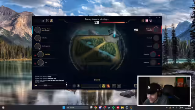 06:31:56Die Pick- und Bann-Phase beginnt mit der Frage, ob ein Bann automatisch gelockt wird, wenn die Zeit abläuft, was unklar ist. Währenddessen genießt ein Spieler Pizza. Die Diskussion über die nächsten Bans geht weiter, wobei Jinx oder Dark als Optionen genannt werden. Ein Spieler muss kurz die Küche verlassen. Es wird festgestellt, dass das Team, obwohl es sich nicht intensiv vorbereitet hat, bereits zwei Siege mit „Spaß-Picks“ erzielt hat. Die Möglichkeit, Seraphine oder Mundo als First Pick zu wählen, wird erörtert. Ein Spieler muss kurz die Hände waschen, während die Bann-Phase läuft. Die Strategie, Seraphine und Mundo flexzupicken, um die Gegner zu verwirren, wird als „krankste Red Hat Draft“ bezeichnet. Ein Spieler beschwert sich über einen Zuschauer, der seit Stunden vorschlägt, Jungle zu spielen. Es werden technische Probleme mit Discord gemeldet, da das Mikrofon nicht funktioniert und die Verbindung abbricht, was zu Frustration führt. Trotz der technischen Schwierigkeiten sind die Spieler bereit für das Spiel und besprechen Items und Trinkets.