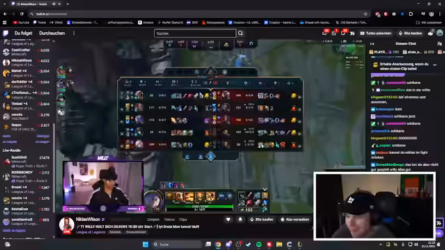 04:08:29Die Champion-Auswahl gerät ins Stocken, als festgestellt wird, dass ein Spieler namens 'Willi' keine Champions zur Verfügung hat. Dies führt zu Verwirrung und Frustration im Team, da die Auswahl bereits seit zehn Minuten läuft. Die Spieler beschweren sich über die Situation und vermuten, dass das gegnerische Team versucht, Informationen über ihre Champion-Picks zu sammeln. Die Stimmung ist angespannt, aber es wird versucht, die Ruhe zu bewahren und eine Lösung zu finden. Die Teamdynamik ist geprägt von gegenseitiger Unterstützung und Motivation, obwohl die Situation alles andere als ideal ist. Es wird deutlich, dass die Spieler trotz der Schwierigkeiten zusammenhalten und ihr Bestes geben wollen.