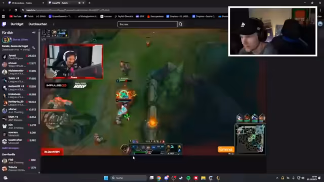 01:46:11Ein intensiver Teamfight entbrennt, bei dem die Spieler ihre Fähigkeiten koordinieren, um Kills zu sichern. Ein 'sehr guter Grip' führt zu mehreren Takedowns und einem 'Cleanup', der das Team in eine starke Position bringt. Der Spieler sammelt 3000 Gold und kauft sich 'Driftmaker', was ihn 'Turbo-OP' macht. Die Stimmung ist euphorisch, und Niki Stemmler wird für seine Leistung gefeiert. Trotz eines schwierigen Match-ups gegen Garen bleibt das Team fokussiert. Es wird über die nächsten Objectives gesprochen, wie den Drake und den Herald, und die Spieler planen ihre nächsten Schritte, um ihren Vorteil auszubauen. Technische Probleme wie ein einfrierender PC bleiben eine Herausforderung, aber die Spieler versuchen, diese zu umgehen und sich auf das Spiel zu konzentrieren.