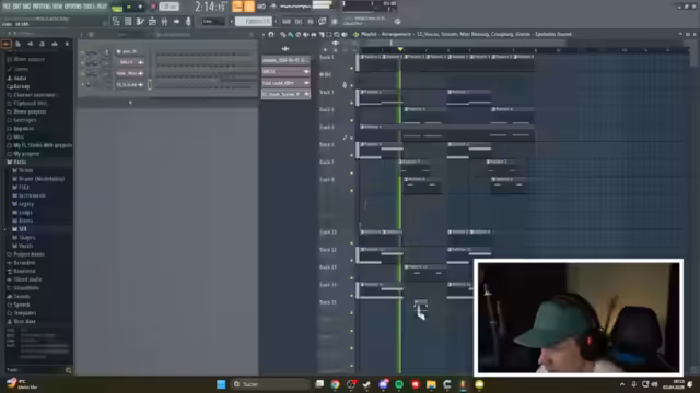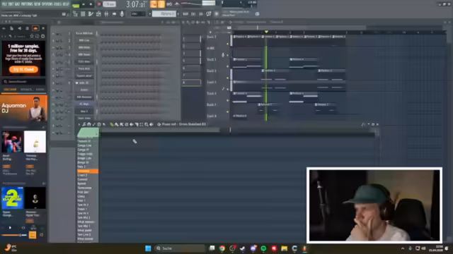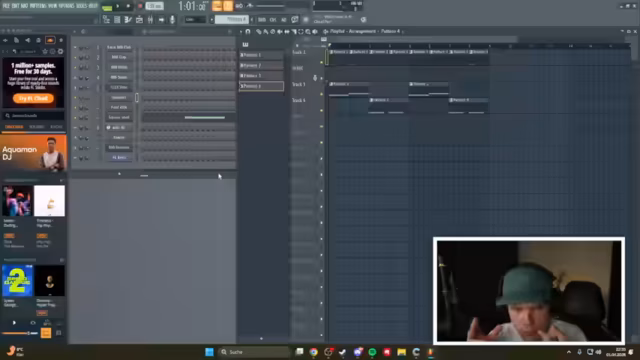 01:47:48Der Streamer beginnt mit der Produktion eines neuen Beats in FL Studio. Er erklärt dem Chat, dass der Beat bereits eine solide Grundlage hat und sich nur noch in der finalen Phase befindet. Er beschreibt den Prozess der Suche nach passenden Elementen wie Hi-Hats, Percussion und einem menschlichen Schrei aus dem Sample-Pack 'Smash Hit'. Dabei stößt er auf technische Schwierigkeiten, da er manche Sounds nicht findet oder sie falsch platziert. Trotz mehrerer Versuche und Chat-Hilfe ist die finale Ausarbeitung des Schreiens eine anhaltende Herausforderung.