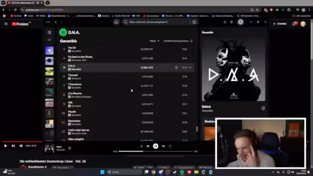 00:22:48Der Streamer präsentiert einen Song, den er als rund und gelungen beschreibt, auch wenn ihm der Inhalt zu wenig um Drogen und Bargeld geht. Anschließend analysiert er mit seiner Community die schlechtesten Deutschrap-Lines, kritisiert bestimmte Textstellen als unpassend oder unverständlich. Er äußert sich zur Entwicklungen des deutschen Raps von früheren Alben bis heute und stellt fest, dass moderne Alben oft durchgehende Stücke enthalten, die man nicht überspringen muss.