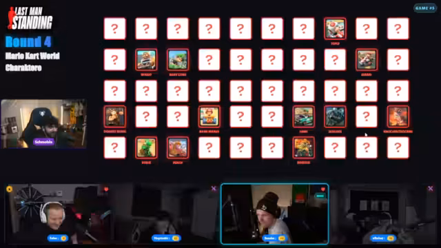 00:36:53Die letzte Kategorie des Quizspiels fordert die Teilnehmer auf, Charaktere aus Mario Kart zu nennen. Sascha beginnt mit Mario, gefolgt von Luigi, Bowser, Peach und Donkey Kong. Yoshi, Toad und Waluigi werden ebenfalls genannt. Die Spieler erweitern die Liste mit Knochen-Trocken und Baby-Mario. Die Runde wird herausfordernd, da einige Charaktere wie Zelda oder Link fälschlicherweise genannt werden, die nicht zu Mario Kart gehören. Weitere Charaktere wie Baby Luigi und Shy Guy werden hinzugefügt. Die Diskussion dreht sich auch um die Möglichkeit, Charaktere zu beschreiben, wenn der Name nicht einfällt. Am Ende werden weitere Charaktere wie Gumba, Baby Daisy, Baby Peach, Berto und Cheep Cheep erwähnt, die die Spieler vergessen haben. Die Runde endet mit der Feststellung, dass Hui das Spiel gewonnen hat, während Rohat Letzter wurde.