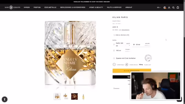 01:43:06Eine Ankündigung einer Parfüm-Verlosung im Stream. Der Streamer wird, wie vor zwei Wochen, ein Duftgewinnspiel veranstalten, aber nur unter der Bedingung, dass das folgende Game gewonnen wird. Es handelt sich um Kilian Angels Share, das der Streamer selbst trägt und an einen im Chat anwesenden Zuschauer verlosen möchte. Die Verlosung ist an einen Sieg gebunden, bei einer Niederleitung findet sie nicht statt.