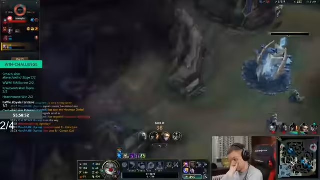 09:40:51Die anfängliche Freude am neuen Spiel weicht schnell Frustration. Der Streamer wirft Philipp vor, zu langsam zu spielen und zu wenig Schaden zu verursachen. Nach fast zehn Stunden Streamingzeit äußert der Streamer, dass er "keinen Bock mehr auf League of Legends" hat und das Spiel als "Scheißspiel" bezeichnet, was auf ein mögliches baldiges Stream-Ende hindeutet.