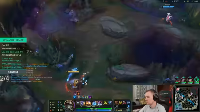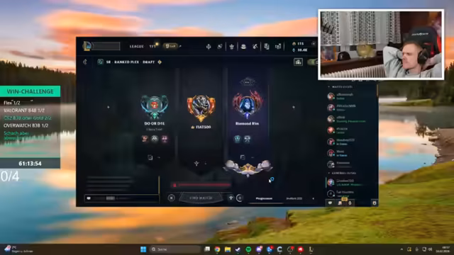 00:00:41Der Stream beginnt mit einer Begrüßung und einer kleinen Verzögerung, da der Streamer keinen Wecker gestellt hat. Es werden persönliche Themen wie Träume und Kopfschmerzen angesprochen. Der eigentliche Spielplan für die 'Win-Challenge' wird vorgestellt: Zuerst wird ein League of Legends Back4Back gespielt, um das Spielverständnis zu zeigen, und anschließend Valorant, das als neues Lieblingsspiel des Chats gilt.