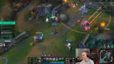 06:22:57Das Gespräch wechselt zu einem sehr anspruchsvollen League of Legends-Spiel. Der Streamer und sein Team kämpfen gegen einen starken Gegner, der doppelte Unterstützer und eine Vayne setzt. Das Spielverlauf ist von intensiven, aber oft unkoordinierten Teamkämpfen und einem hohen Maß an Verwirrung geprägt. Der Streamer gibt strategische Anweisungen, die jedoch nur teilweise umgesetzt werden, was zu frustrierenden Situationen und Spielverlusten führt.