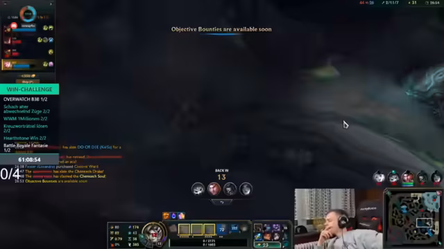 01:46:17Das Gespräch dreht sich um die Teamdynamik innerhalb der WinChallenge und die Tatsache, dass die Lobbys ohne einen bestimmten Spieler, Philipp, leichter sind. Gleichzeitig wird die hohe Leistung von Philipp anerkannt, dessen Anwesenheit die Schwierigkeit der Spiele erhöht, aber auch den Erfolg des Teams verbessert. Der Streamer drückt seine Sorge um den Zustand von Tree Lover aus und fragt nach dem Verbleib der anderen Teilnehmer der Challenge.