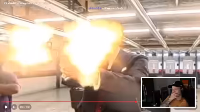00:03:33Es wird ein Video von Mark Gebauer auf seinem englischsprachigen YouTube-Kanal "Mark Gebauer Firearms" gezeigt. Mark hat diesen Kanal, der sich mit Waffen befasst, um ein amerikanisches Publikum anzusprechen, da er befürchtet, dass deutsche Zuschauer den Kanal "kaputt machen" könnten. Der Streamer widerspricht dieser Ansicht und betont, dass die deutsche Community unterstützend sei. Das gezeigte Video, das 34 Minuten dauert, trägt den Titel "Will a 50 cal go through 3000 paper plates?" und zeigt Mark in Vegas, wie er verschiedene Waffen testet, um deren Durchschlagskraft auf 3000 Pappteller zu demonstrieren. Der Streamer ist gespannt auf den Inhalt und hofft, dass keine automatische, KI-generierte deutsche Synchronisation verwendet wird, da diese ihn stören würde. Er schätzt, dass Mark mit diesem Schritt, ein solches Video zu veröffentlichen, endgültig zum "kompletten Amerikaner" wird, und spekuliert humorvoll über eine mögliche geschenkte US-Staatsbürgerschaft.