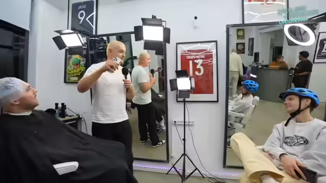 00:04:18Der Stream beginnt in Hamburg mit vier Personen, wobei Chef Strobl kurzfristig dazukam. Es wird eine Umstyling-Challenge angekündigt, bei der sich Sascha, Max und Chef Strobl frisieren lassen werden. Sascha kann aufgrund seines Helms nicht teilnehmen, während Chef sich seine langen Spitzen blondieren lassen möchte. Max und Sascha planen, sich den Frisur-Look von Eminem (Slim Shady) zu verpassen. Der Stream dient auch als Vorbereitung auf die Offline und Ehrlich-Tour, die am Donnerstag in Zürich startet und im Ausland fortgesetzt wird.