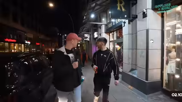 01:52:13Vor dem Hintergrund eines geplanten Reviews der zuvor gekauften Kleidung wird nun der taxi ins nächste Ziel, ein Burgerladen, angetreten. Die Stimmung ist gelöst und unterhaltsam, während die Jungs den Inhalt ihrer Bestellungen – Bagels und Nuggets – besprechen und sich gegenseitig provozieren. Sascha erwähnt seine Gaming-Konten und bewirbt damit den Burgerladen, während Boris von einer fast-Überfahrung berichtet, was die Aufmerksamkeit der Gruppe auf sich zieht und das Gespräch aufdeckt.