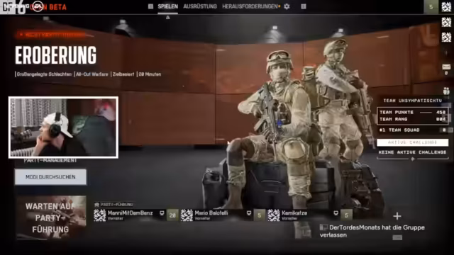 00:01:43Der Stream begrüßt Zuschauer zum Battlefield 6 Livestream mit einem neuen Squad. Der Streamer ist gespannt auf die Zusammenarbeit mit neuen Leuten, die er zum ersten Mal trifft. Nach einer kurzen Vorstellrunde stellt sich das Squad vor,其中包括 Stefan, Fabian und Kamikaze. Stefan ist langzeit Battlefield-Spieler, Fabian hat Battlefield seit jeher getestet und Kamikaze ist neu im Spiel. Sie planen taktischer zu spielen als vorher. Der Streamer freut sich darauf, mit diesen erfahrenen Spielern zu zocken und gemeinsam Herausforderungen zu meistern.