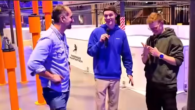02:11:21Es gibt ein Ninja Warrior Duell um ein Music Frame. Rahim soll den Gewinner bei Kroko im Chat announcen. Ein Galaxy Z Flip 6 hat gewonnen. Es gibt zwei Rampen, eine große und eine kleine. Der Boden darf nicht berührt werden. Heiko mit leichtem Vorsprung. Heiko geht die kleine Rampe. Moritz zieht auf. Heiko ist drüber. Heiko gewinnt. Es gibt Applaus. Es wird der Moment in Zeitlupe gezeigt, als Moritz Heiko fast überholt hätte. Mit Galaxy AI kann man cooleren Content machen. Es sind nur noch zehn Minuten. Es gibt Diskussionen, warum jemand nicht als Erster war. Die Location ist toll. Es wird sich für das Mitmachen bedankt. Die Hände werden gewaschen. Es wird Ciao-Chao gesagt. Es wird sich bei Samsung bedankt. Es wird sich beim Chat bedankt. Es gibt was zu gewinnen. Es soll im Chat rumeiern, um was zu gewinnen. Die Keule wurde abgenommen. Es wird Pantomime gemacht. Es wird überlegt, was im Chat verlost werden soll. Es wird eine Wanderung getestet. Wenn der Chat Bock hat, dann bleibt er drauf. Es soll noch mal ein, zwei Sachen rausgehauen werden. Das große Finale ist für das Ende, wenn sie oben sind. Es wird hinten durch die Produktion gegangen. Es wird die Jacke angezogen. Es wird ein Mikrotausch gemacht.