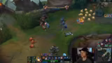 01:43:01Nach einem musikalischen Intermezzo, bei dem er den Song 'All of Me' vorspielt, wendet sich der Streamer wieder League of Legends zu. Er spielt mit dem Champion Trundle und beschreibt sein Gameplay als dominant und erfolgreich. Er feiert einen 'First Blood' und äußert sich begeistert über seine Leistung. Auch im weiteren Verlauf der Runde ist er siegesgewiss und kommentiert die einzelnen Tötungen und Spielzüge enthusiastisch, bis das Spiel schließlich mit 'GG' für sein Team endet.