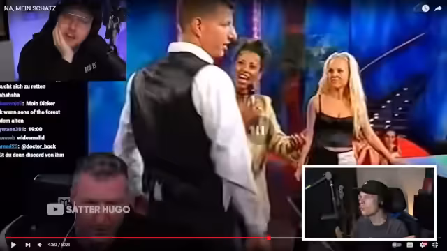 00:57:12Im Stream werden Parallelen zwischen verschiedenen Entertainern gezogen, insbesondere zwischen Jens und Schradin, die beide im Fernsehen waren und ähnliche Charakterzüge aufweisen. Der Streamer diskutiert die besondere Frisur von Schradin und merkt an, dass dieser gewisse Eigenschaften von Jens übernehmen könnte. Auch werden die ähnlichen kreativen Ansätze der beiden Personen hervorgehoben, was auf eine interessante Verbindung zwischen ihnen schließen lässt.