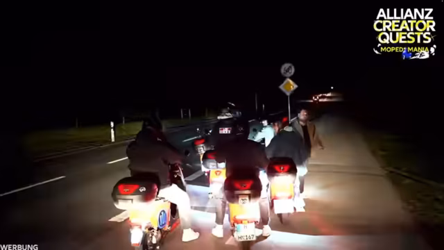 00:00:40Nach der Pause startet die eigentliche Nachtfahrt mit den Mopeds. Die Streamer berichten sofort über die klimatischen Herausforderungen, insbesondere bei Temperaturen um den Gefrierpunkt. Sascha und Max Schradin bilden ein Team und unterhalten sich über die unangenehmen Temperaturen und den Fahrtwind. Während der Fahrt kommt es zu technischen Problemen und Abweichungen vom Kurs, was für zusätzliche Spannung und Diskussionen über die Route sorgt.