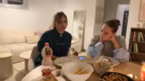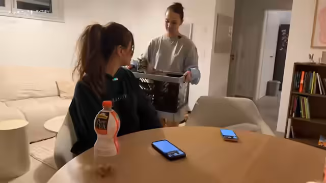 Der Mittelpunkt des Abends war die neu eingerichtete Küche, in der gemeinsam griechische Pitas mit selbstgemachtem Teig gebraten wurden. Parallel dazu wurde frisches Hähnchen zubereitet und ein griechischer Salat geschnitten. Im Hintergrund tauchten während der Arbeiten persönliche Anekdoten und Diskussionen über Ernährung und Haushaltsführung auf.