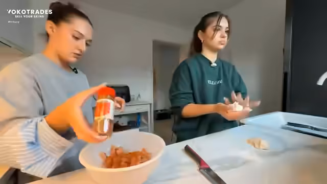 01:57:26Die Streamerinnen beginnen mit der Zubereitung des Teigs für die Pitas. Dabei diskutieren sie über die Größe der Teiglinge und beschreiben den Prozess des Ausrollens der Teigfladen. Annika äußert sich, dass es in Ordnung sei, wenn die Pitas nicht gleich groß sind. Bei der Zubereitung fällt der Begriff Therapeutic, der beschreibt, dass Kochen eine beruhigende Wirkung hat. Annika unterbricht den Prozess, um mit dem Chat über verschiedene Körperlichkeiten zu plaudern, was zu humorvollen Vergleichen führt.