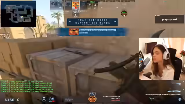 06:33:55Die Spielerin gibt Anweisungen, welche Positionen eingenommen werden sollen und betont die Wichtigkeit, zusammenzuspielen und nicht unnötig zu pushen. Sie äußert Frustration über die mangelnde Bereitschaft einiger Mitspieler, ihre Positionen zu ändern oder auf ihre Anweisungen zu hören. Die Spielerin versucht, das Team zu motivieren und zu koordinieren, während sie gleichzeitig ihren Unmut über das Verhalten einiger Mitspieler äußert. Sie gibt taktische Anweisungen, wie man bestimmte Bereiche räuchert und flasht, um den Gegner auszuspielen. Es kommt zu Diskussionen über die Strategie für die nächste Runde, wobei die Spielerin versucht, die bestmögliche Taktik zu finden, um das Spiel zu gewinnen. Sie äußert ihren Frust über die Inkompetenz ihrer Teammitglieder. Die Spielerin gibt Anweisungen, wie man bestimmte Bereiche räuchert und flasht, um den Gegner auszuspielen. Es kommt zu Diskussionen über die Strategie für die nächste Runde, wobei die Spielerin versucht, die bestmögliche Taktik zu finden, um das Spiel zu gewinnen. Sie äußert ihren Frust über die Inkompetenz ihrer Teammitglieder.